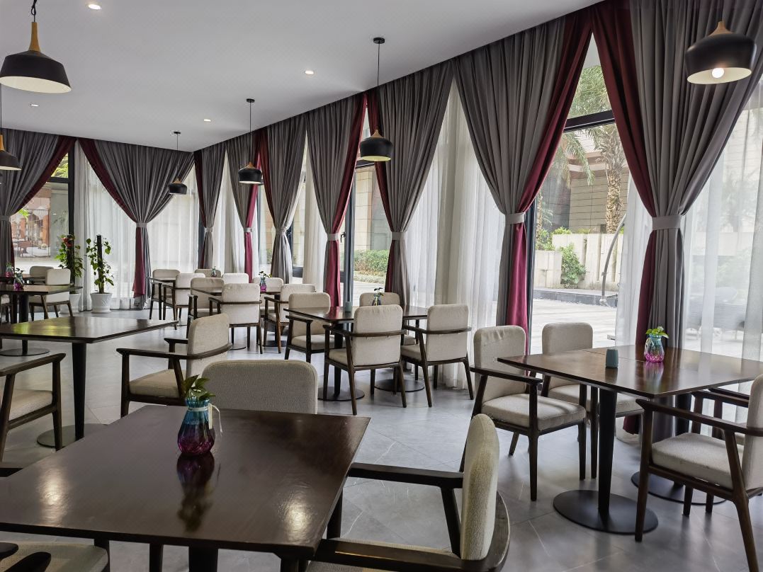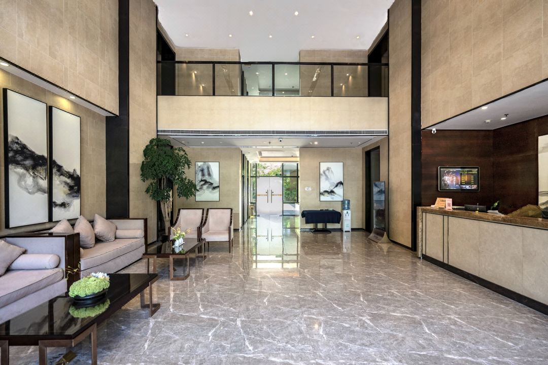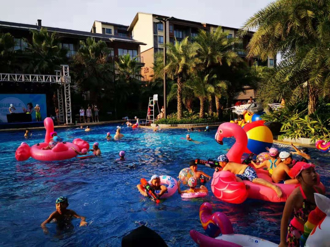 酒店配置有1500平方超大室外游泳池、500平方室内游泳池、健身房、多功能球馆、瑜伽室、高级会所、大型免费停车场。外揽并规划有1000亩大美荷花塘、3万平方米的商业街区,内享千米生态水系等配套设施,优美舒适的环境是商业洽谈、旅游度假的上佳之选。