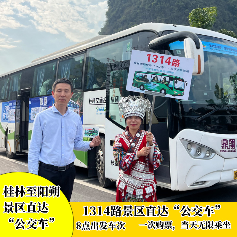 [停靠站点】桂林北站一桂林站一世外桃源一阳朔加油站一凤鸣停车场一蝴蝶泉景区一万景码头一如意峰景区一银子岩景区
