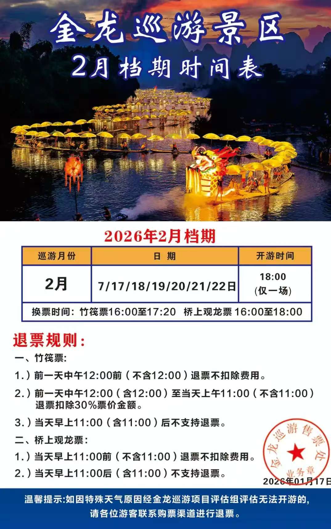 4、取票地点:阳朔白沙镇遇龙村金龙巡游售票处;